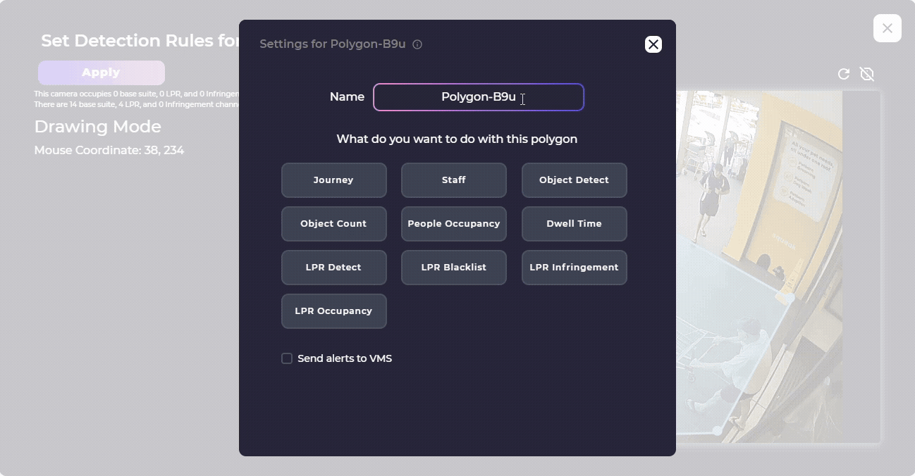 - Real-time occupancy count within defined zones