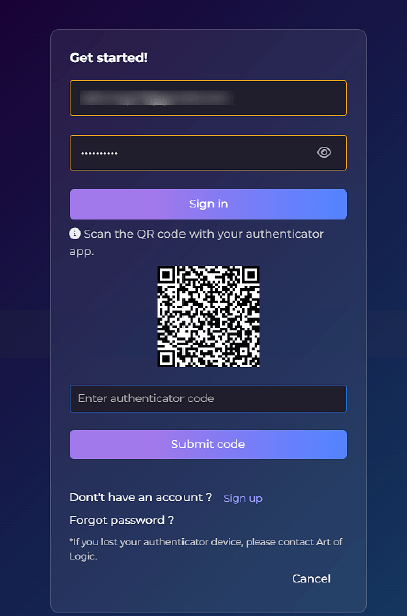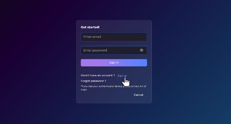 This will bring up the following pop up where you can enter the email you wish to sign up with and create a password for the account: