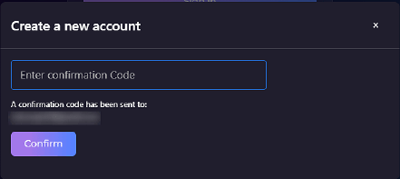 After you click the Sign Up button in the previous step you will see the following tab pop up asking you to enter a confirmation code.