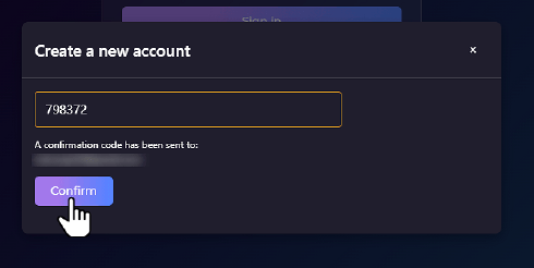 Once you receive the email, copy the confirmation code and enter it into pop up tab from before, then click Confirm.