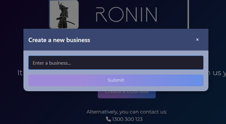 Enter the name you wish to name your business, you will not be able to change the name so make sure it is entered correctly. Once you have entered the name click on Submit.