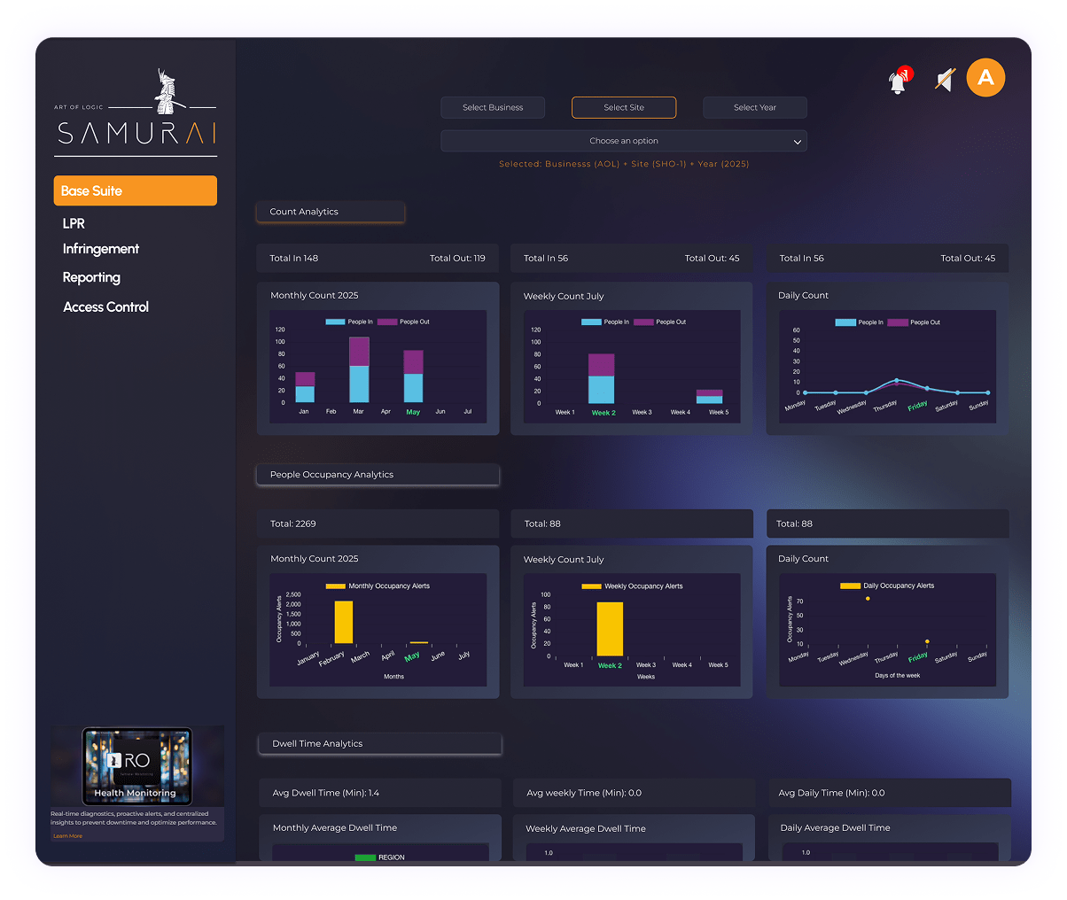 Shogun, part of the Samurai Suite, includes advanced people-counting capabilities that deliver accurate, real-time insights into occupancy and flow. It turns camera feeds into actionable data, enabling smarter decisions and smoother operations across any environment.